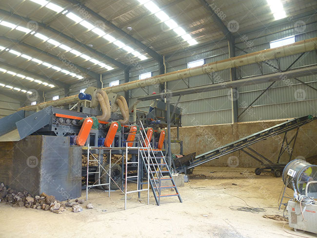 該用戶原料主要來(lái)源于建筑固廢,原料黏土較多,里面夾雜的雜物也較多,如:塑料、鋼筋、泡沫等輕物質(zhì)。經(jīng)公司技術(shù)部門研究,在泥石分離機(jī)的基礎(chǔ)上增加了風(fēng)機(jī)、打散、除鐵等裝置,來(lái)有效進(jìn)行對(duì)該復(fù)雜的物料進(jìn)行分選。